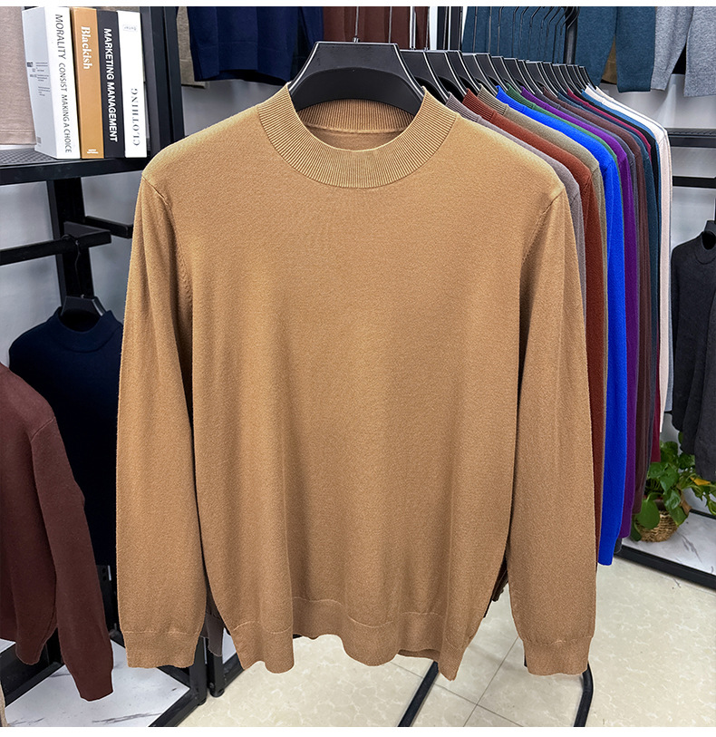 2025 Autumn and Winter Men's Stand Collar Cashmere Casual T-shirt