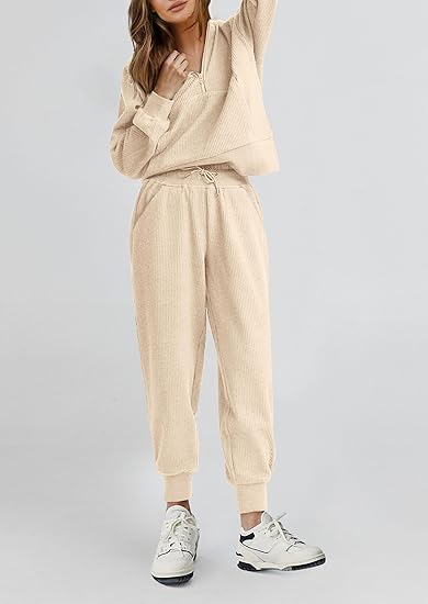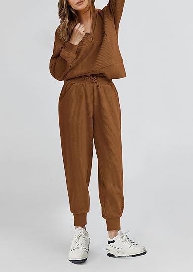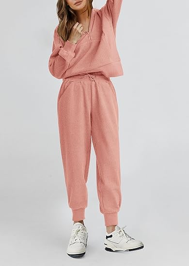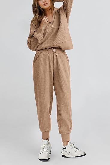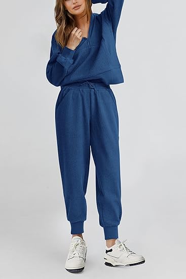 NEW 🔥 Women's Cotton Two-Piece Oversized Drawstring Sweatshirt Wide Leg Sweatpants Casual Set