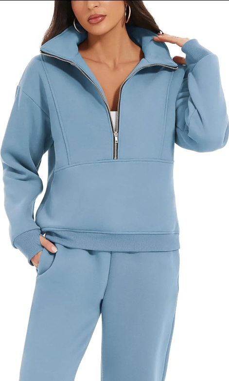 NEW🔥Women's 2 Piece Outfit Fleece Half Zip Sweatshirt Joggers Pants Set Tracksuit Sweatsuit